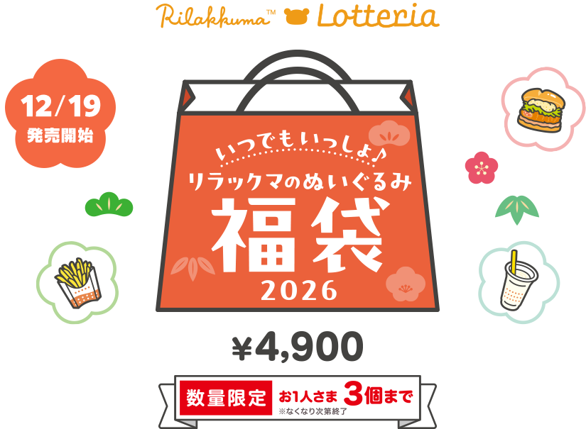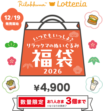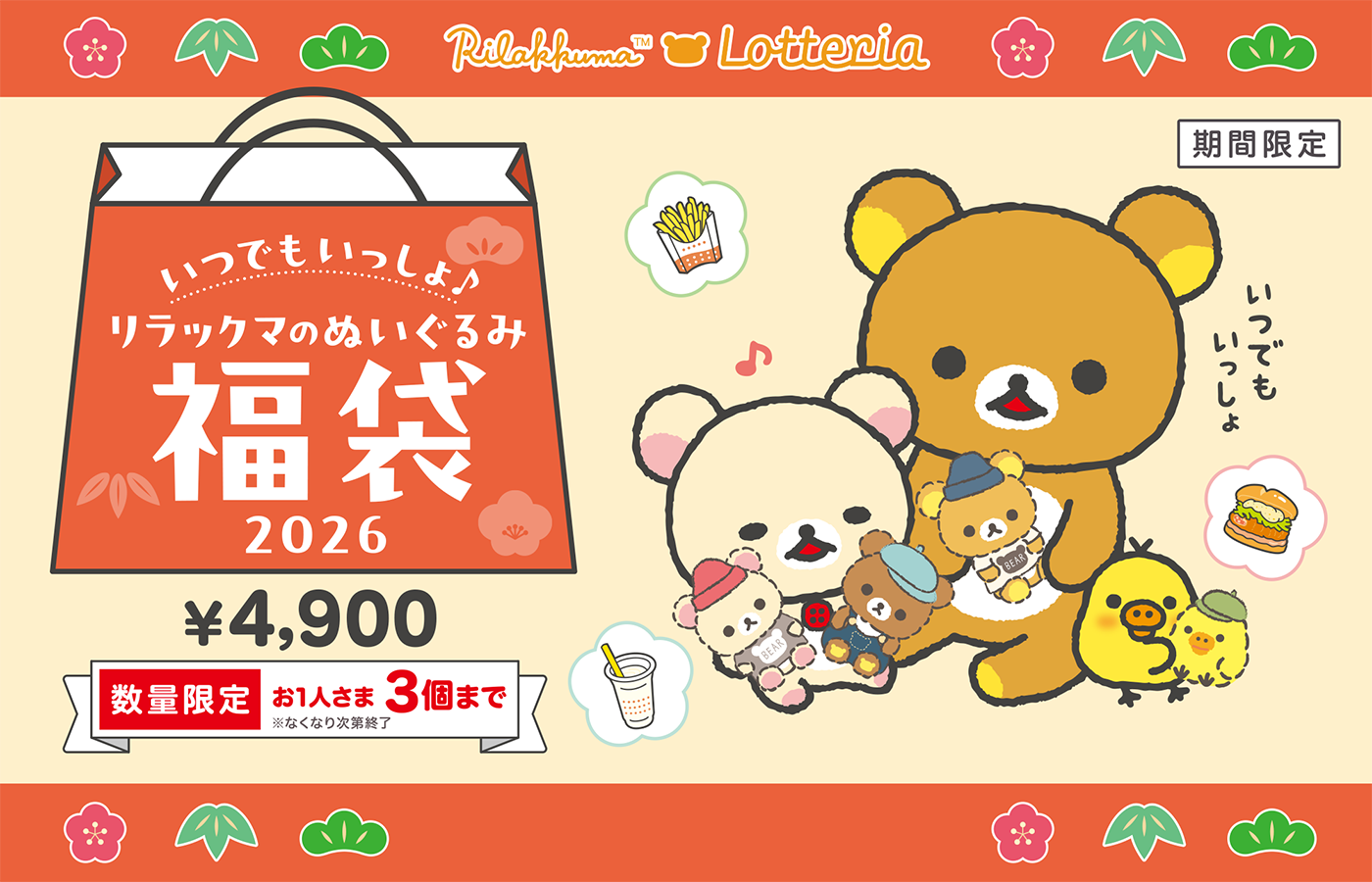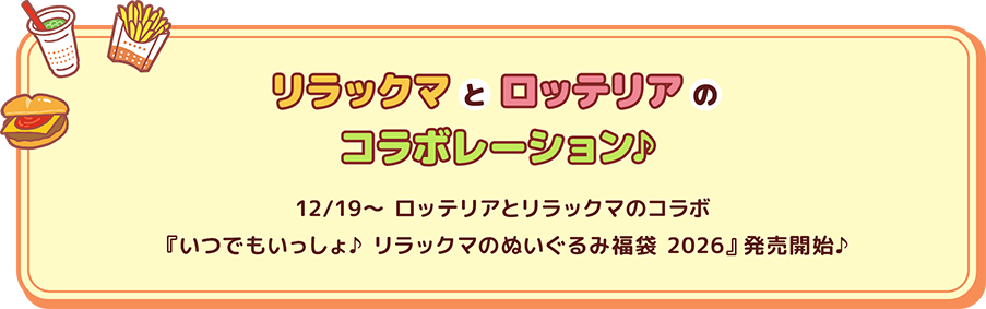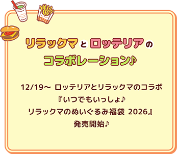 ぜひこの機会に、ロッテリアの「いつでもいっしょ♪リラックマのぬいぐるみ福袋2026」